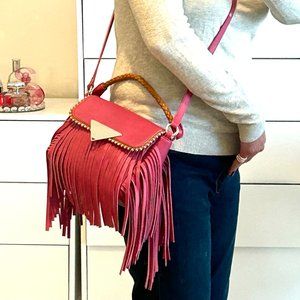 FINAL DROP! Sara Battaglia Studded Fringed Crossbody Leather Handbag NWOT