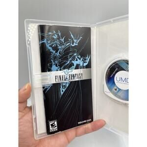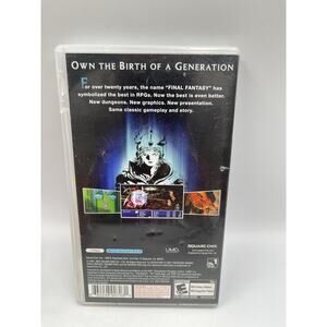 The product is a Final Fantasy 1 20th Anniversary Sony PSP complete game with manual, tested and in working condition. This handheld video game falls under the fantasy and role-playing genres, with a rating of E10+ (Everyone 10+). Published by Square Enix, it is part of the Final Fantasy series and is compatible with NTSC-U/C (US/Canada) region codes. This edition includes special features and is a must-have for fans of the Final Fantasy franchise.