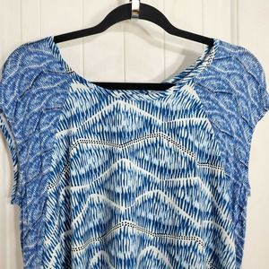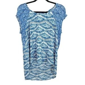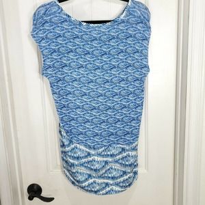 Akemi + Kin Anthropologie Women's Blouse Meuse Blue Mix Print Hi Low Tunic Top