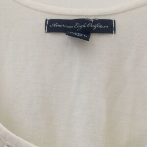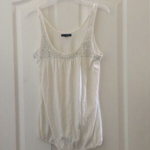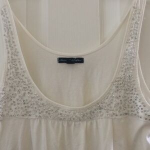 This is an embellished ladies tank top from American eagle. If you look closely on the last picture you will notice a few loose threads as well as possibly a loose or missing bead or two. This item has a fine elastic bottom.