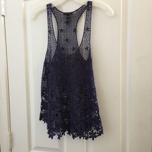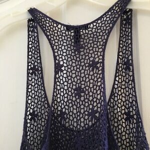 This is a crocheted racerback top from fang, Size: XS. Crudely measured, pit-to-pit is 15-3/8”, bust is 30-3/4”, and length is 26-1/2”.