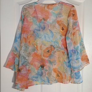 Here's a lovely Women's Raiment Fashions Sheer Sequined Top with bell-style sleeves, Size M.