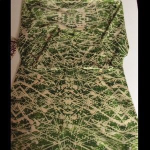 Brand new with tags. AMMA designs is manufactured in Los Angeles. Tops are unique and one of a kind boho chic designs. This top features a green and beige tan splatter print with 3/4 sleeves. Beautiful blend of nylon and spandex. Has stretch to it.