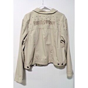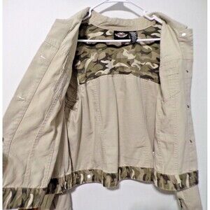!! FINAL MKDWN Harley Davidson Cropped Jacket Women's Khaki Embroidered Logo