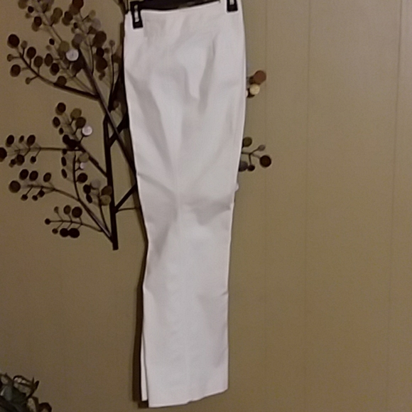 Beautiful pant, 97% Cotton, 3% Lycra Spandex. Machine wash cold, tumble dry low heat. 2 hidden pockets under waistband. Off white in color.