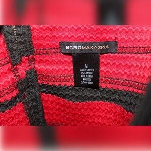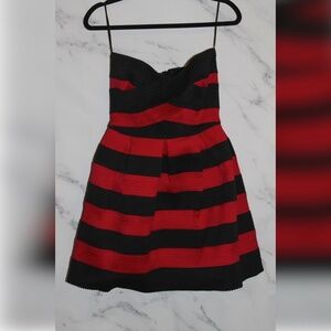 BCBGMaxAzria Pleated Cocktail Dress - size medium: Fabulous condition deep red (almost maroon), and black, gold zipper with crystal detail down the back. Fitted at the bust and waist with an a-line flare at the bottom.