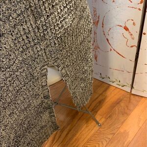 Who needs a coat when you have a beautiful long and cozy sweater. This is a top quality sweater & size S/M but seems to fit larger. Very very stretchy. EUC show no sign of wear. Smoked free and pet free home