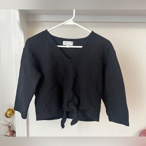 FINAL PRICE Madewell Textured Tie-Front Top Black V Neck 3/4 Sleeve
