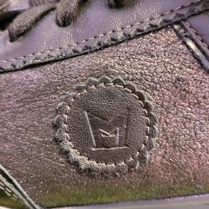 EUC Black and metallic black leather sneakers. Featuring Runoff Air Jet System