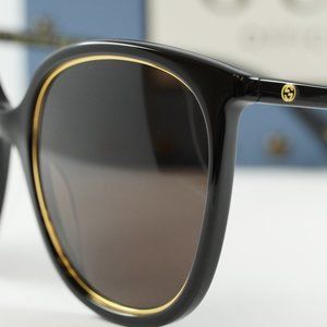 FULLY DISCOUNTED. BUY NOW ONLY, NO OFFERS ACCEPTED RETAIL $ 6 4 0 BRAND NEW // AUTHENTIC MODEL: GG1076S 002 FRAME COLOR: BLACK LENS COLOR: BROWN MATERIAL: ACETATE SIZE: 56 - 21 - 145 FOR: WOMEN STYLE: CAT EYE / ROUND POLARIZED: NO MADE IN: JAPAN ORIGINAL GUCCI RETAIL PACKAGING INCLUDED: CASE, CLOTH (SEE PICS) SHIPPING FROM NYC EVERY BUSINESS DAY FOLLOW OUR STORE SHOWROOM FOR MORE AMAZING DEALS