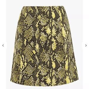 NWT Karen Millen yellow snake zip front skirt, Size 10. Give a luxurious touch to your new-season wardrobe. This yellow and black faux scuba like fabric A-line skirt features a snake-print texture, partial exposed zip-up front. Fully lined. 90% poly, 10% spandex. Brand new with tags!