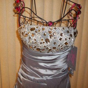 *FINAL PRICE* Silver Taffeta Strapless Embellish Short Dress 4