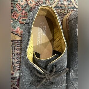 FINAL PRICE Toms Mens 140515 Gray Cap Toe Denim Lace Up Oxford Dress