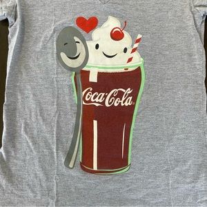 -⚡️FINAL PRICE⚡️ -V-neck -Short sleeve -Pullover -Coca-Cola ice cream float graphic -Top (of shoulder) to bottom measurement = 23” -Pit to pit measurement = 14” -Good condition! -Smoke-free/pet-free home
