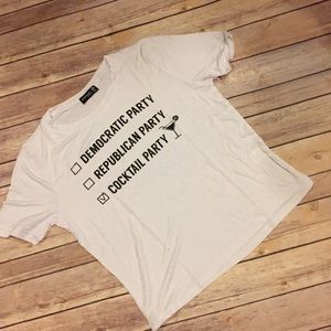 I know I'm not the only one over all the politics talk?! Amiright?!? Love it, super cute! Fabric is 60/40 cotton Polyester. Semi fitted tee. Measurements/photo is of the medium. (Bust 36") Medium-Large available. No trades!