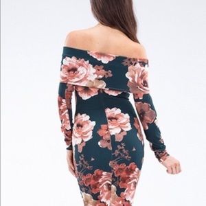 A Deep Teal Green floral dress perfect for date night!! 95% polyester and 5% spandex. NWT
