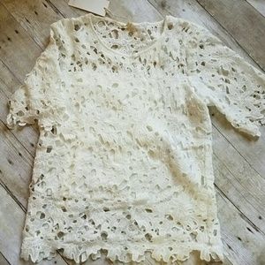 A beautiful blouse to dress up or down. Will look great with a pencil skirt, fancy pumps, sparkly jewelry and out to celebrate. Wear it with your straight leg jeans, leggings, boots, denim jacket, long fun earrings and go grab a pizza or jump on the back of a motorcycle. It is lined from your upper bust to the bottom about 2 inches before the hem line. No need to add a Cami. Open lace sleeves.