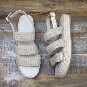 Cream colored braided strap sandals with slight gold shimmer. Brand new without box.