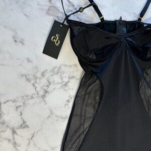 Elevate your style with the stunning "Valeria" dress from God Save Queens. This sultry, form-fitting black midi dress features a sleek silhouette with strategically placed mesh cutouts, adding the perfect balance of sophistication and allure. The halter neckline with a daring cutout at the bust complements the figure-hugging design, while the sheer paneling accentuates your curves in all the right places.