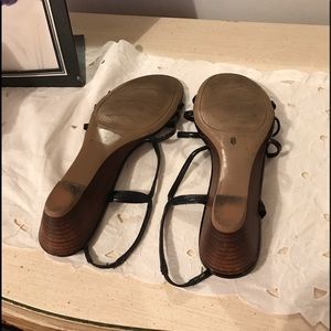 These wedges/sandals are really cute. Worn twice but i don't do well with heels. They are comfortable, cute and perfect for summer and for a night out. Goes with everything! In good condition. The back stretches which is really nice! Open to all offers!