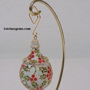 FINAL SALE PRICE NYCO Int. Cloisonne Finial Stand Ornament w/Holly & Berries
