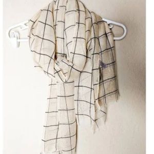 Rachel Pally Natural Grid Scarf Wrap in Black & Cream Plaid Check Print Light