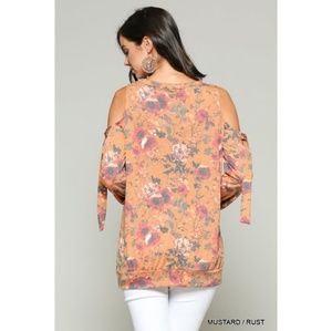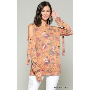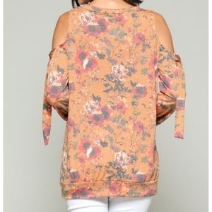 Chic boho floral Cold shoulder cut out sweater! Scoop neck top with banded bottom, boxier feel and fabric is perfect, soft and stretchy!