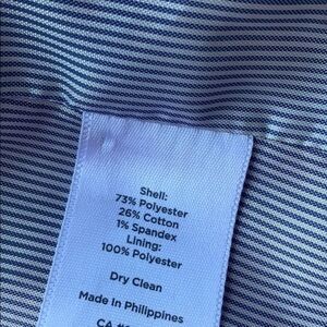 It has a textured feel to the outer fabric that gives this a slight seersucker look, not too heavy weight, shoulders have some padding, a great transitional jacket!