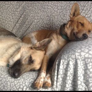 Yours look like they are pals too. I think you need at least two, especially if you're at work most of the day. They are peas and carrots. Got them on the same day and they've been inseparable since. Love both the Queenie and the German. Ive never had a chihuahua. Are they good dogs?