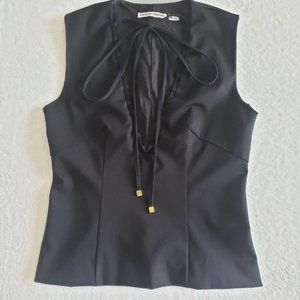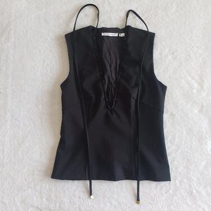 FINDERS KEEPERS Deep V Neck Front Tie Sleeveless Black Top, SZ Medium
