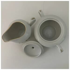 FINE CHINA OF JAPAN, Creamer & Sugar Bowl w/Lid, White with Pink, Green & Brown