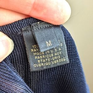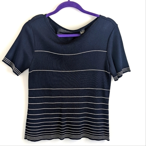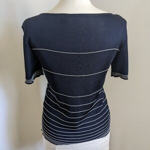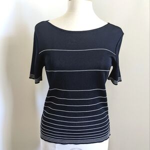 FINE Knit Navy Blue Short Sleeve Sweater M Striped Top