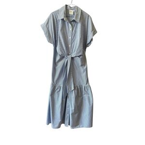 FINLEY STRIPED TIE WAIST COTTON BLEND MIDI SHIRTDRESS COASTAL NAUTICAL A LINE LG