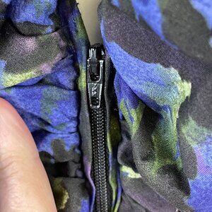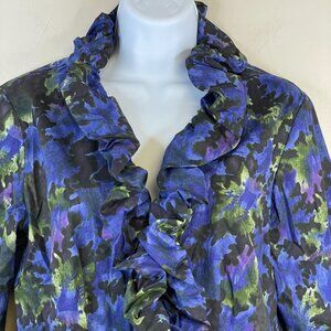 FINLEY Womens ABSTRACT Top Size M Blue Full Zip FEMININE Ruffle Front Blouse