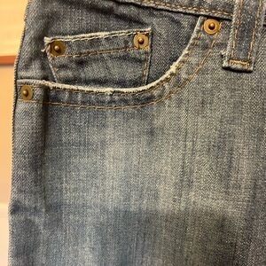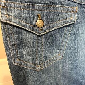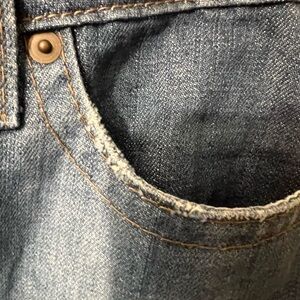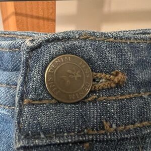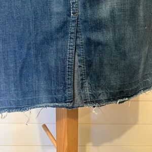 FINS Vintage Anthropologie midi, pencil denim skirt with distressing. Back slit for ease of movement. 29 fits about size 6 to 8