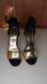 Sophisticated heels with a bold gold strap. Perfect for evening wear.
