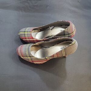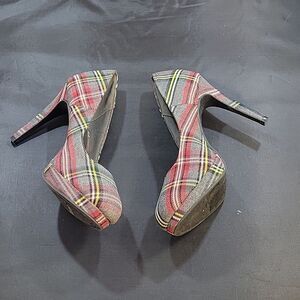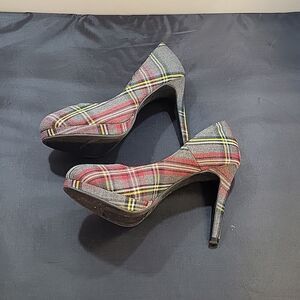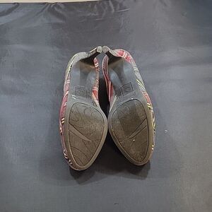 FIONI ROUND TOE SLIP-ON STYLE HIGH HEEL STILETTOS PUMP SIZE 61/2 MULTI-COLOR LIKE GRAY, RED,YELLOW AND MORE MADE WITH FABRIC UPPER MAN MADE MATERIALS HEEL HEIGHT MEASUREMENTS APPROX 4"INCHED THIS ITEMS IS PRE-OWNED EXCELLENT CONDITION WITH ONLY LIGHT SIGNS OF WEAR IF ANY CHECK THE PICTURES