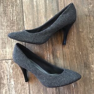 FIONI wool look fabric covered charcoal gray heels pumps size 9.5. Gently used. 4” heel.