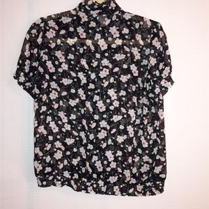 SEE THROUGH FLORAL BLOUSE WITH RUFFLES AROUND THE COLLAR AND THE FRONT OF THE BLOUSE
