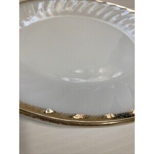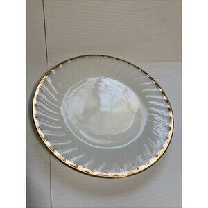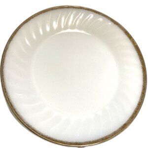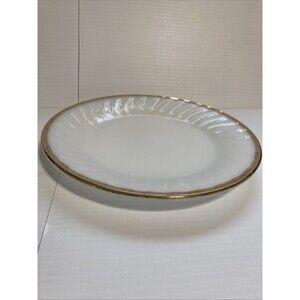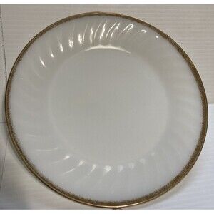 FIRE KING Vintage Milk Glass Gold Rim Swirl Edge Dinner Plate 9 inch Diameter