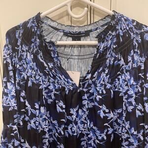 Smocked top with optional closure at neck, lining, pockets, tie waist.