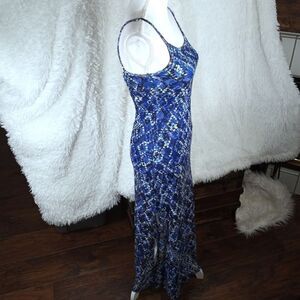 FIRE BLUE, BLACK, & WHITE STRE5CH SHEER MESH MAXI DRESS SZ.XS EUC