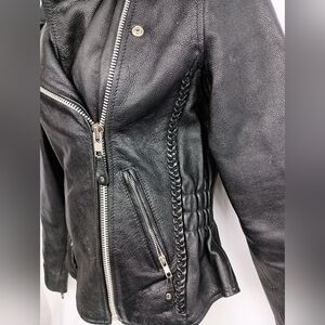 FIRST CLASSICS Preppy Biker Outdoors S Motorcycle Black Leather Jacket (#1,241)
