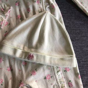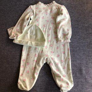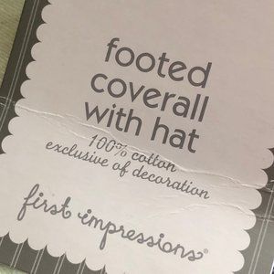 FIRST IMPRESSIONS Long sleeve footed romper light green & pink - Size 0-3 mo NWT