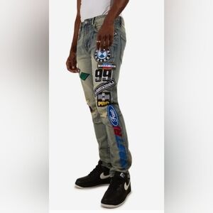 Add something bold and unique to your wardrobe with these Racing Jeans from First Row featuring intricate detail, vibrant colors, captivating patterns, and are designed for maximum comfort and durability.