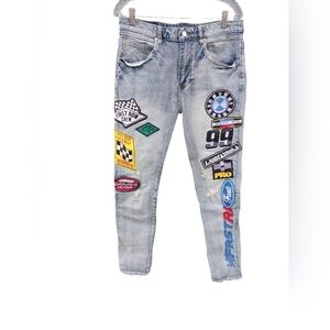 FIRST ROW Graphic Denim Racing Jeans