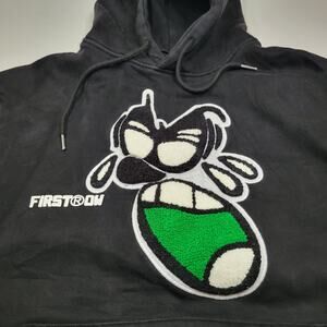 FIRST ROW Spring Break All Over Multi-patch Hoodie Black Chenille Embroidery Size Small