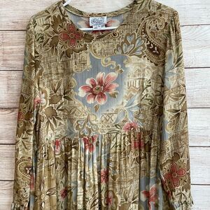EXCELLENT CONDITION FIRST BLOOM FLORAL MAXI DRESS IN TAN FLORAL PRINT