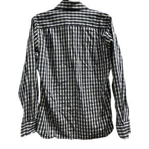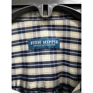 FISH HIPPIE blue plaid king sleeve button front sz S