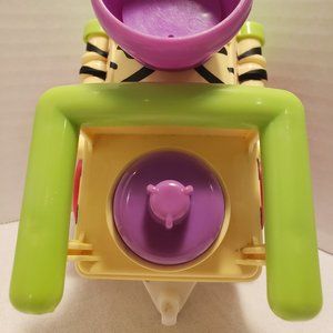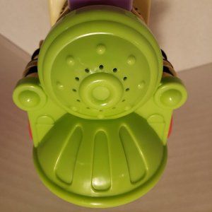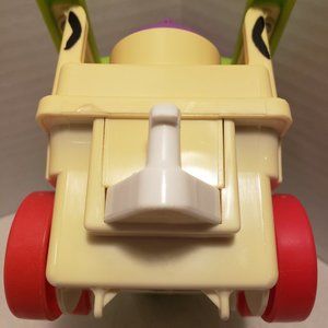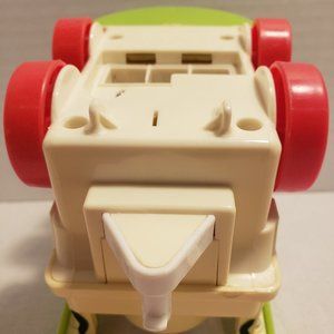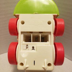 Very good condition. Wheels work perfectly. Button works perfectly and initiates the tune(s), which plays perfectly. The battery compartment is very clean. The battery compartment lid is in perfect shape (and included). Neither the head nor the threads of the screw to the battery compartment lid are stripped. Clean item. See pics. Priced accordingly.